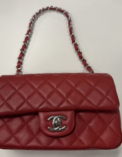 The Cardinal Red shade is perfect for any St. Louis Cardinals fan who wants to show off their pride in style. Compact yet iconic, this Chanel mini rectangular bag in red lambskin with silver hardware is the ultimate statement piece.